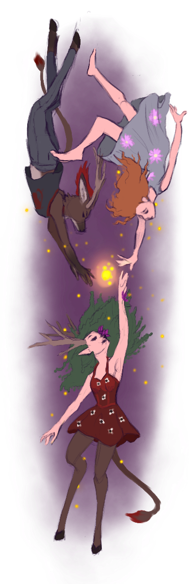 Past lives can influence characteristics, for example; a dreamform who lost their eye in their mortal life may end up using their eye for intervention. A dreamform who in their past life had a deep connection with plants may then sprout plants from their skin as a dreamform. A dreamform who died under a tree with sun shining through the leaves may have shifting sun spots across their skin permanently.This can also be a poetic correlation. For example, a dreamform who would have been considered to have a heart of gold may have a golden sheen under their skin. Or a dreamform who in their past life was responsible for thousands of deaths may have red-toned hands as if they were stained by blood.