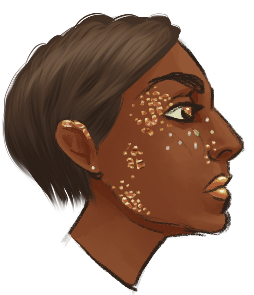 Some dreamforms naturally have glittery glimmery hair or skin. The most common way this shows is in patches on the skin, or in hair.